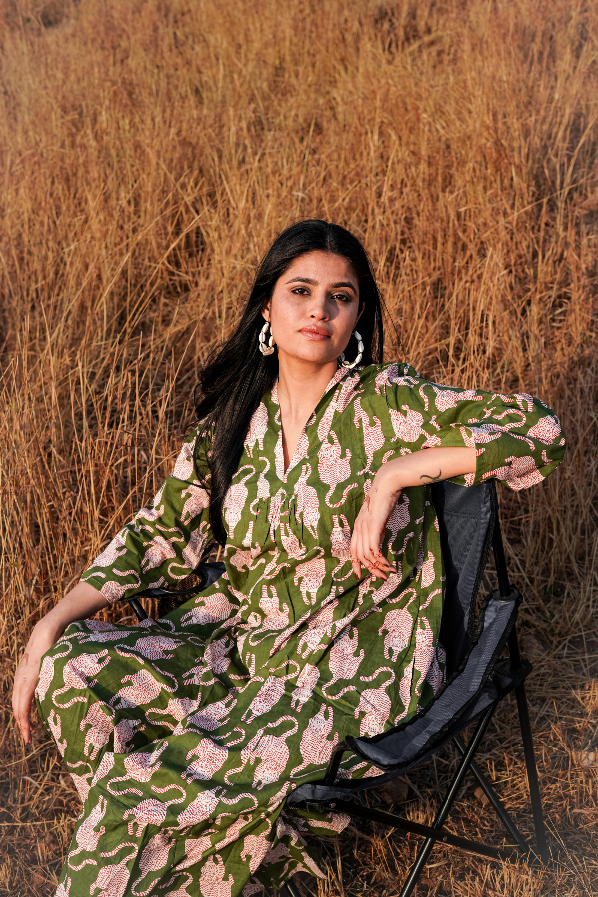 Style Note: Pair this dress with handcrafted jewellery and leather sandals for a timeless, earthy look that transitions seamlessly from a serene brunch to an evening gathering.