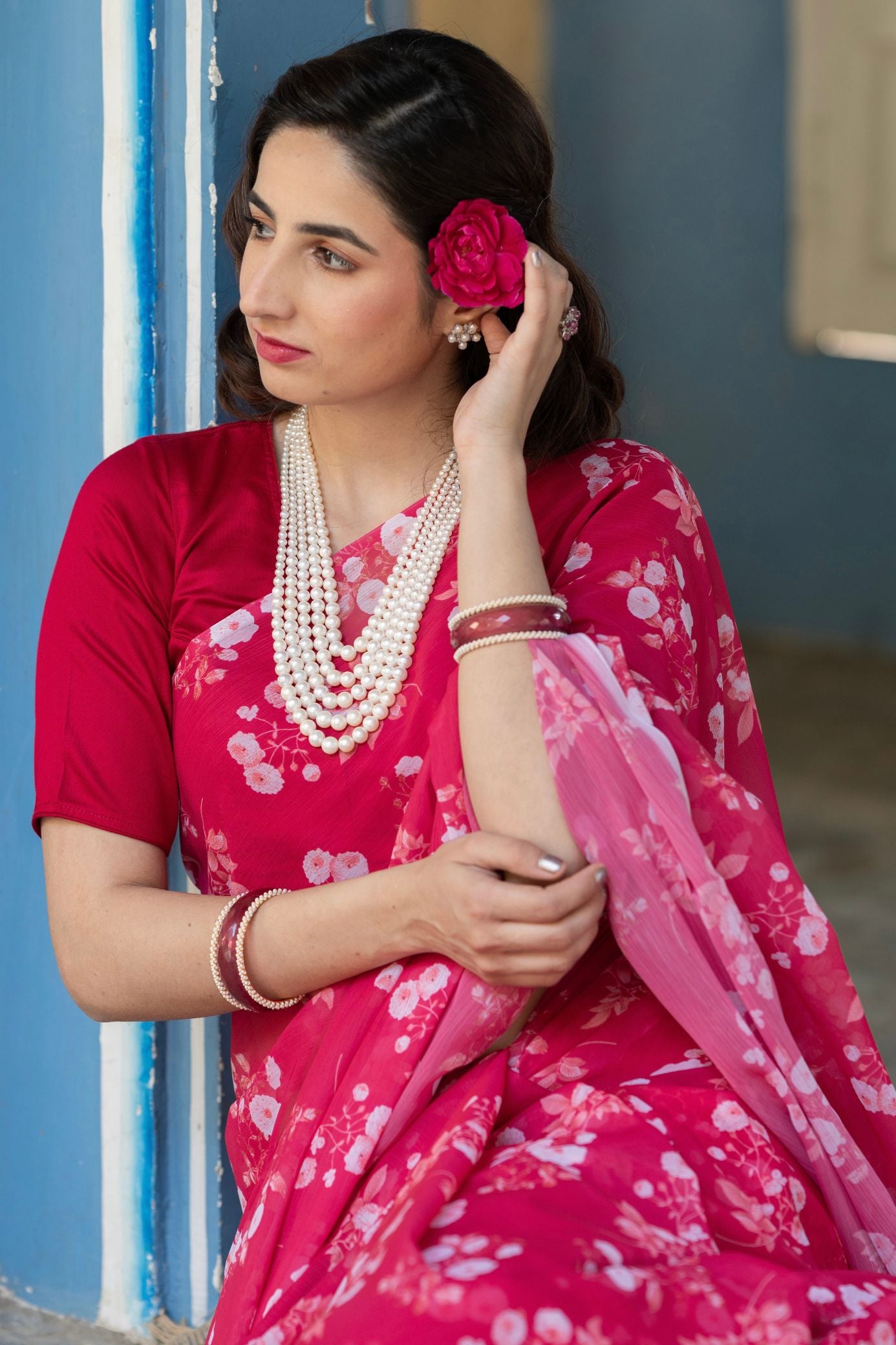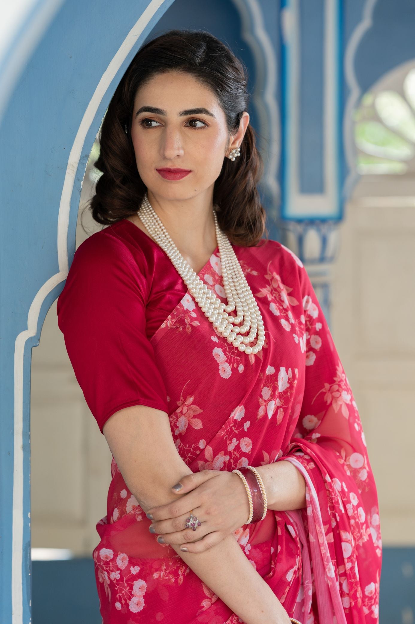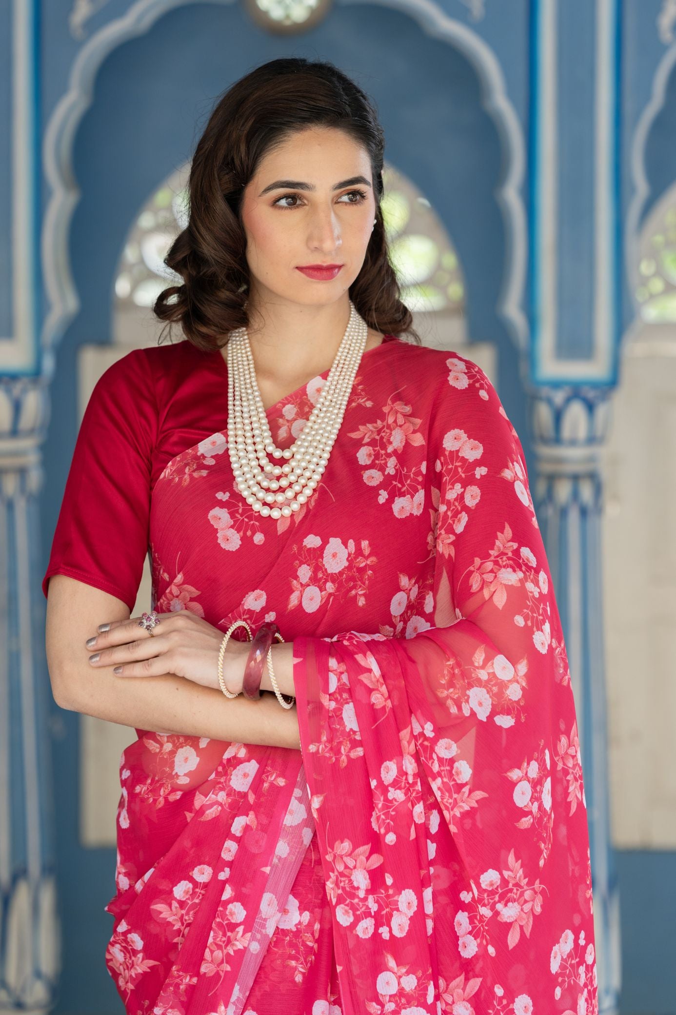 Ravishing Red French Chiffon Saree with matching Jam cotton silk blouse